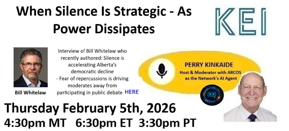 Bureaucrats know this well; wait long enough and the status quo will return – except when it doesn’t. Every age flatters itself by believing it is uniquely polarized. Ours, however, has industrialized polarization. Every issue is conscripted. Every question is weaponized. Every pause is treated as complicity. Politics no longer debates outcomes; it sorts identities. Black or white. Left or right. Legal or illegal. For or against. Choose now, speak loudly, and never revise your position. In this environment, the middle is mocked as weakness. The undecided are branded cowards. The patient are told they are late. And listening—true listening—is treated as a luxury we can no longer afford. That is a profound mistake. Continued below No need to register. Just Zoom in https://us02web.zoom.us/j/84258596166?pw.. Bill Whitelaw is the Executive Director of Rextag in Calgary Alberta. He is a Senior energy executive skilled across a broad base of strategic and operational functions, with a key focus on public policy, government affairs and evolution of the resource sector. HIs experience is complemented by extensive corporate and non-profit board experience. FOR MORE Continued form above Because the most consequential political force of OUR TIME is not shouting. It is watching. Not mobilizing, but waiting. Not power, but timing. There is a growing, largely invisible cohort that does not march, hashtag, or posture. They watch the protesters protest. They listen to the rhetoric harden. They notice how every movement, once righteous, becomes performative; how every cause, once urgent, becomes captured; how outrage decays into habit. They are not apathetic. They are conserving energy.
